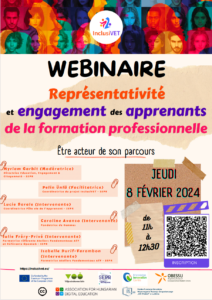 The second InclusiVET webinar was held on 8 February 2024. The webinar was held in French and was organised by InclusiVET partner Société d’Enseignement Professionnel du Rhône (SEPR). The webinar consisted of presentations, discussions, and Q&A sessions with participants.